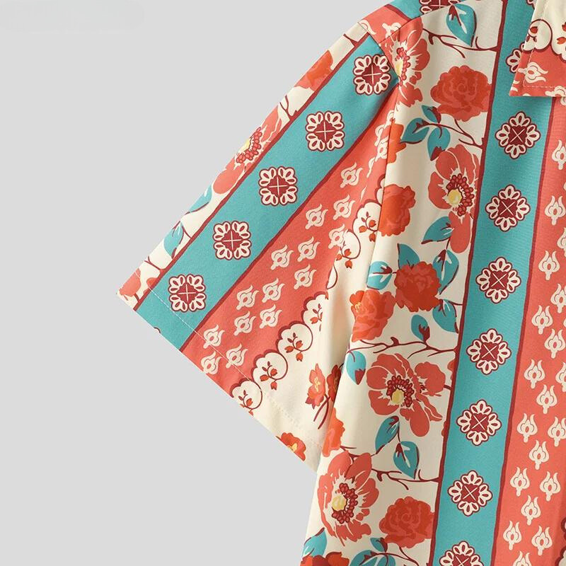 Dive into the warmer months with this ice silk shirt that's as breezy as your summer agenda. It's eye-catching design and feather-light feel are perfect for commanding attention at festivals or relaxing in style at your favorite beach spot.