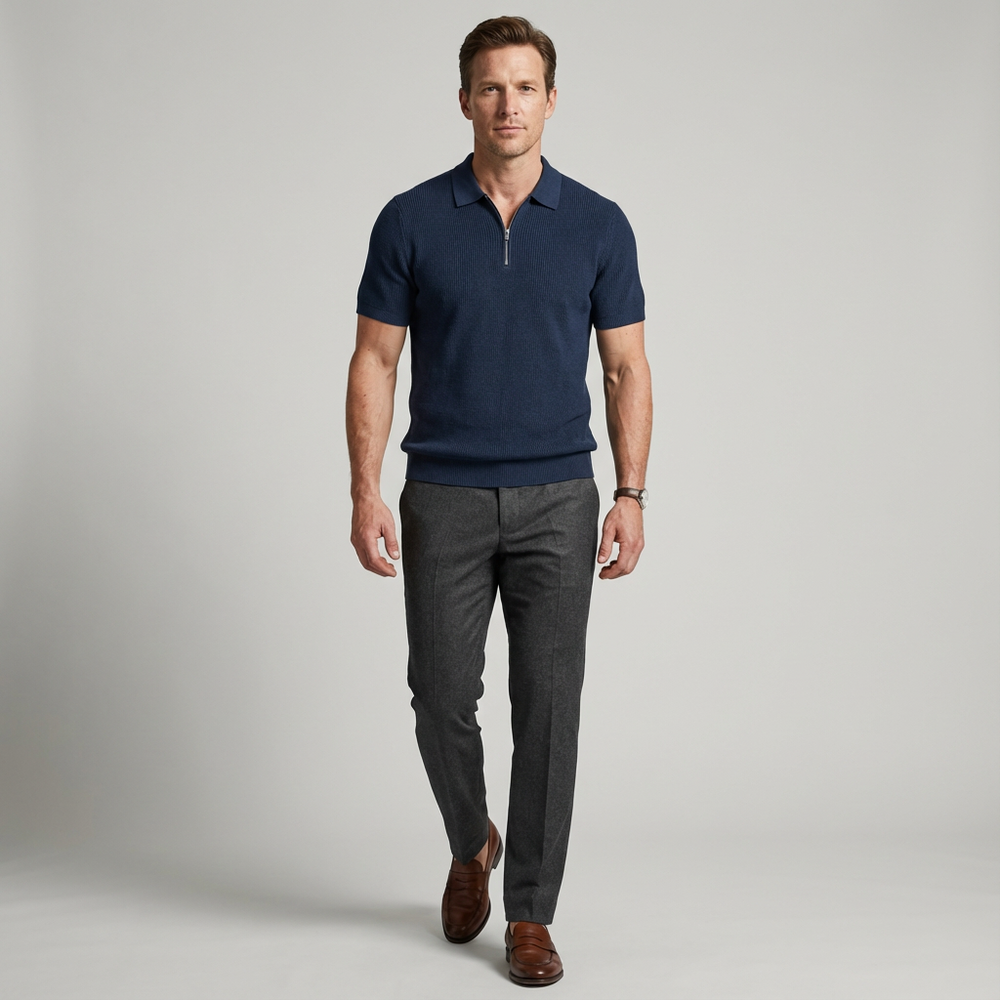 Ronni Vinci - Knit Polo Long Sleeve Shirt