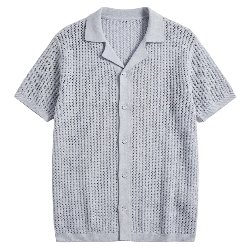 Turn heads with this open-knit button-up, crafted from soft cotton for ultimate breathability and casual sophistication. Whether layered or worn solo, it’s the perfect piece for any occasion.