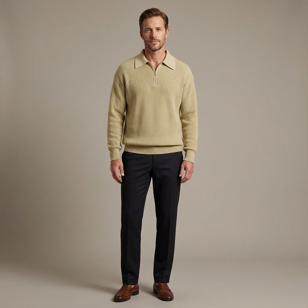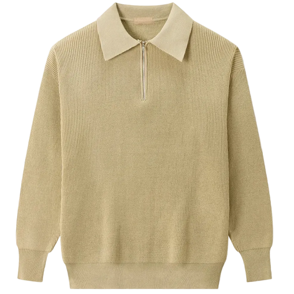 Crafted from soft, premium knit, this half-zip sweater combines a classic silhouette with modern elegance. Its breathable fabric and sleek collar design make it a versatile piece, perfect for layering during transitional weather.
